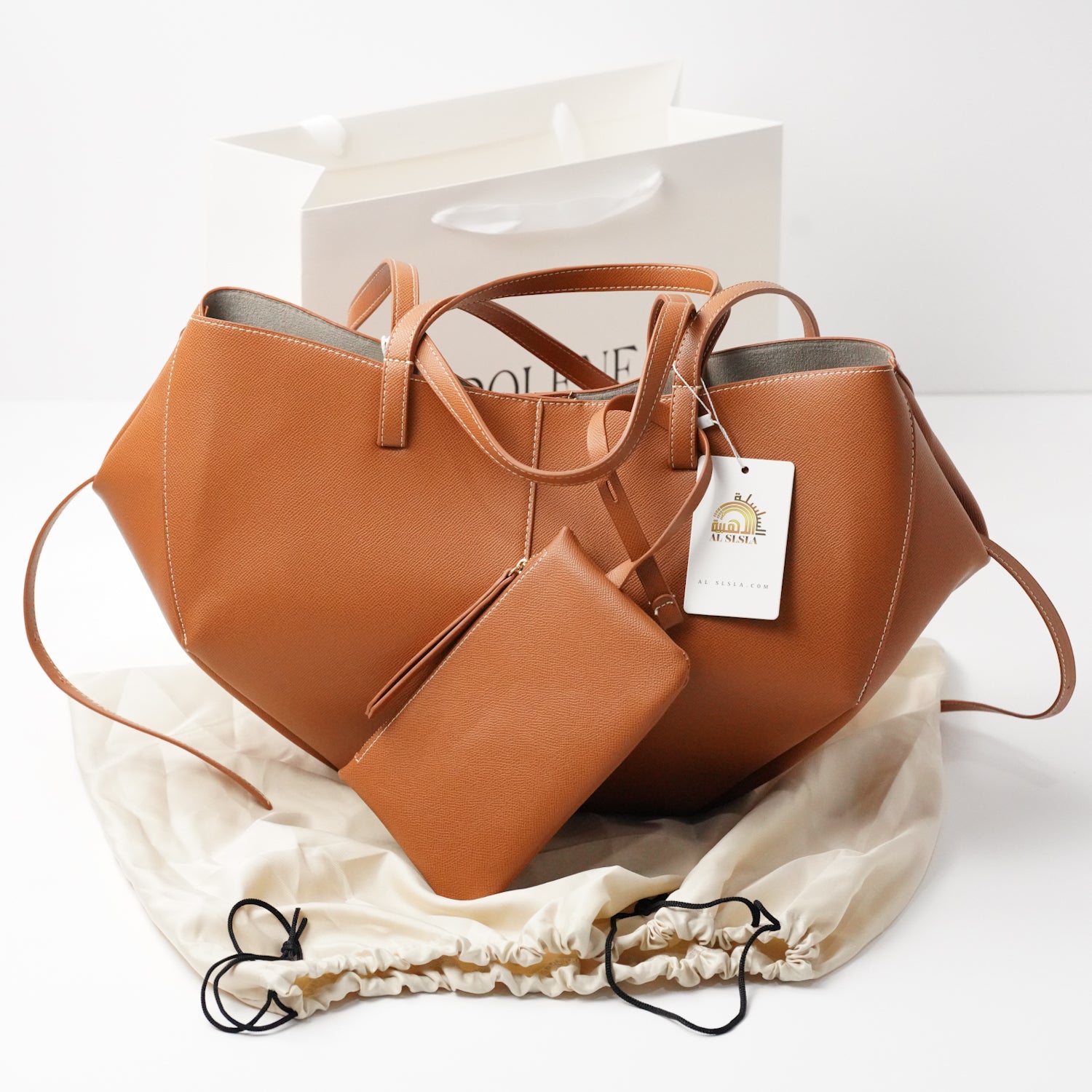 المكونات : حقيبة ومحفظة وتغليف قماش