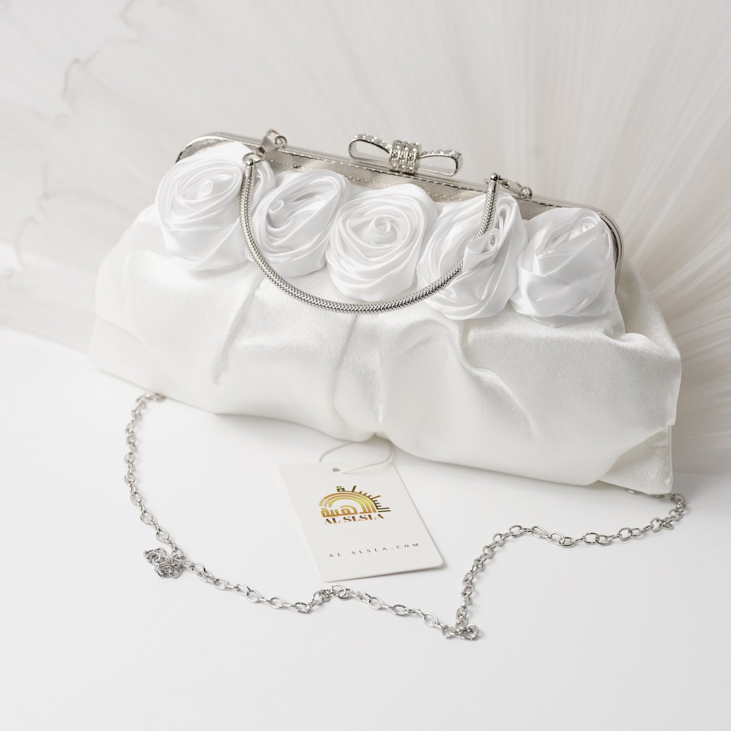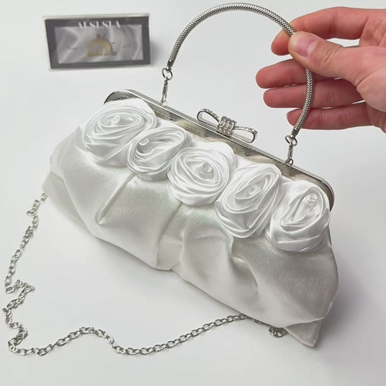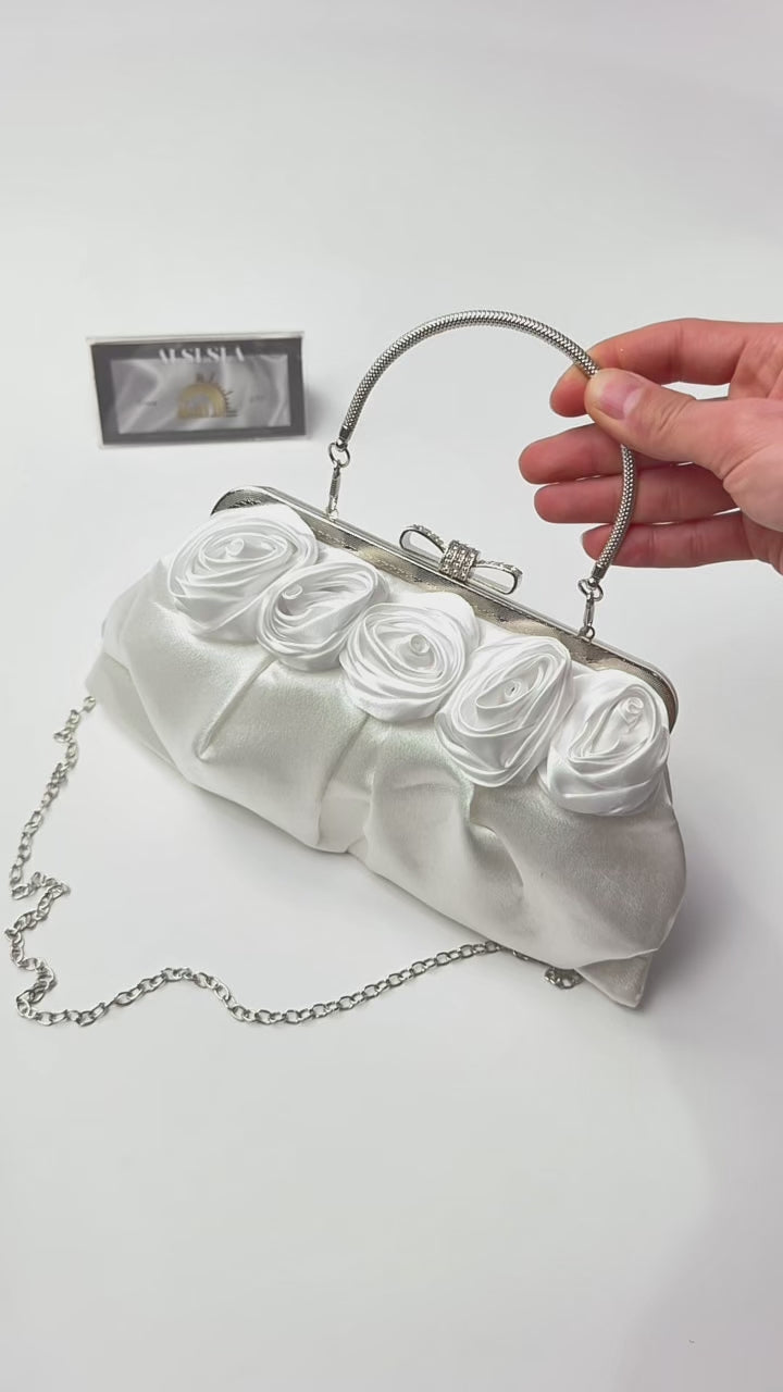 حقيبة سهرة الورد الابيض